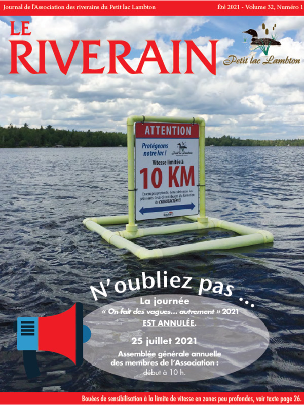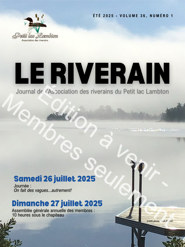 L’Association des riverains du Petit lac Lambton (ARPLL) a vu le jour en 1986. Ce n’est qu’à partir de 1988, que l’ARPLL a diffusé à ses membres, à chaque année une édition du journal Le Riverain.